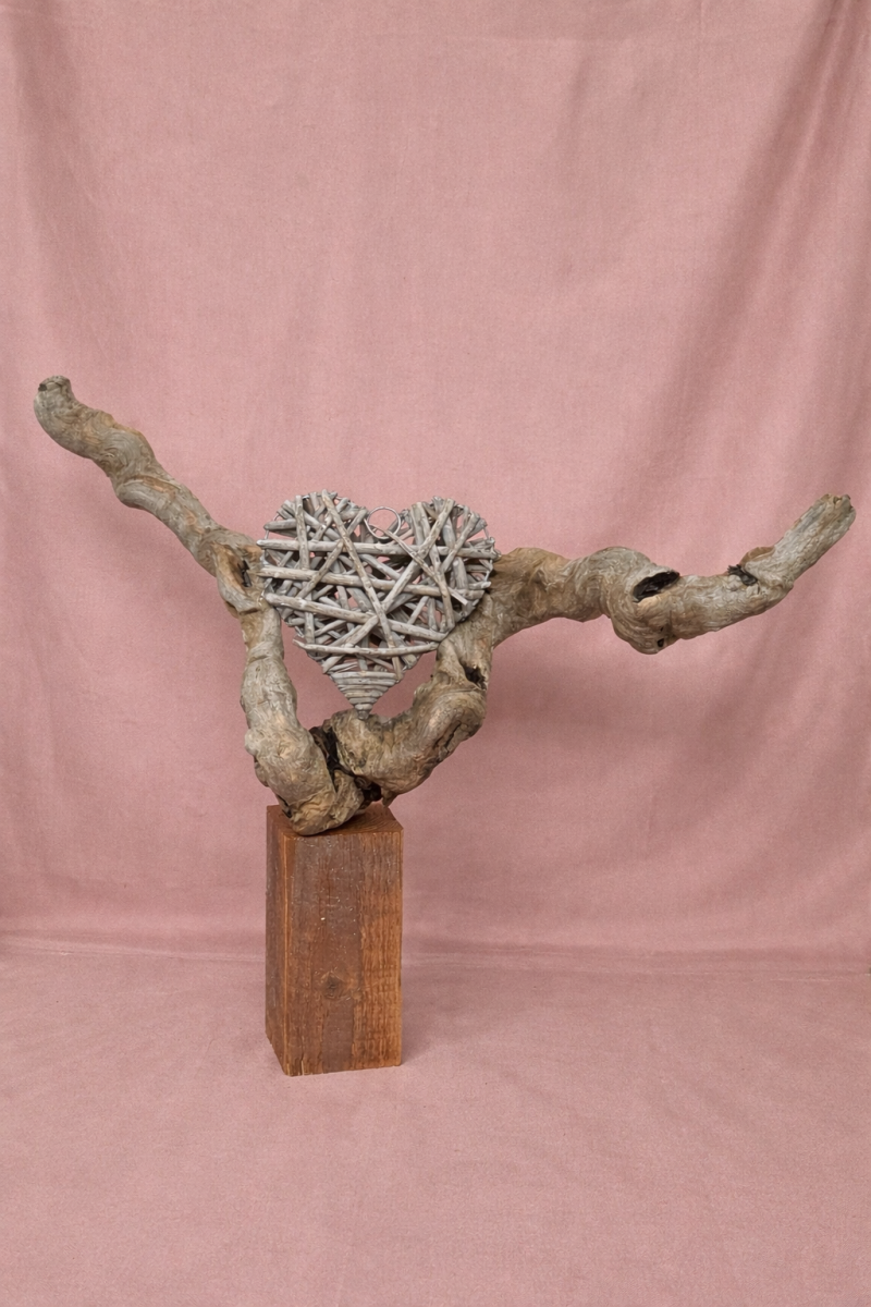 Ein Herz aus Metall, kunstvoll platziert auf einem Schwemmholz, das in seiner Form an ein Herz erinnert. Dieses stimmungsvolle Dekorationsstück überzeugt nicht nur durch seine ansprechende Optik, sondern auch durch die durchdachte Beleuchtung. Durch das sanfte Licht wird die natürliche Struktur des Holzes betont und das Metallherz eindrucksvoll hervorgehoben. Ideal für drin Zuhause, zaubert es eine warme Atmosphäre in jeden Raum. Ob im Wohnzimmer, Schlafzimmer oder als romantisches Geschenk – dieses Kunstwerk verbindet Natur und Handwerk auf wunderbare Weise.